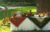 На территории сада было выстроено три зоны взрослая столовая, детская столовая и концертная площадка.